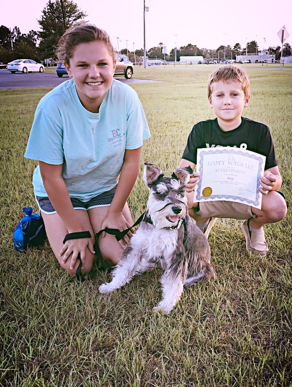 Happy Wags' training program was perfect for our 9 month old mini schnauzer, Yogi. The in-home training program was easy for our family. Catherine helped us with 'everyday' issues and showed us ways to deter bad habits and encourage good ones. We were instructed on how to teach the new commands and encouraged to practice often. We were more than pleased with Yogi's progress during our 6 week course and are planning to enroll him in additional training once we have reinforced and feel comfortable with the things we have already learned